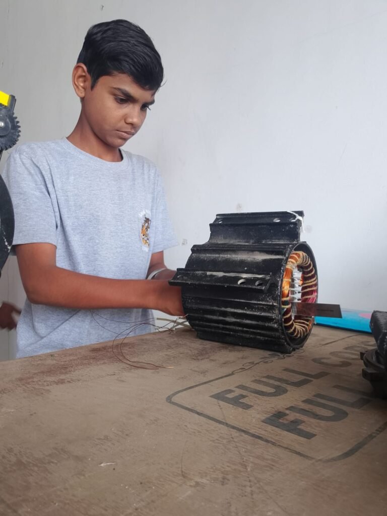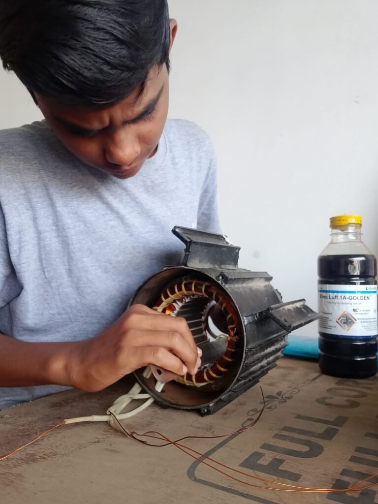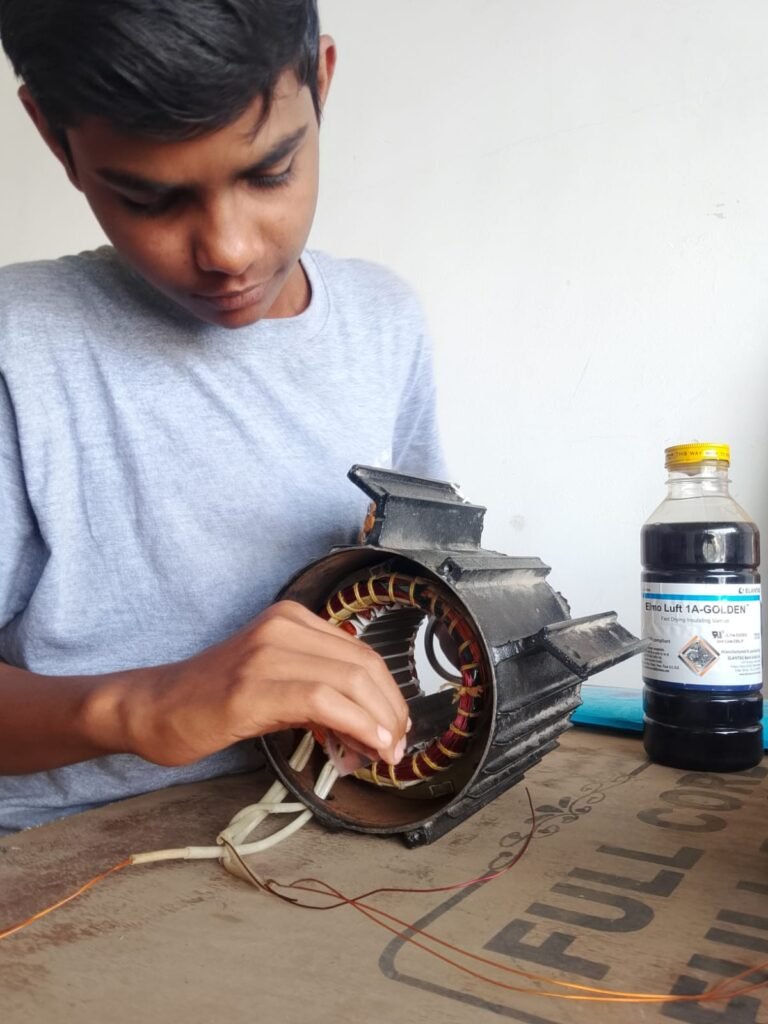 6)रीवाइंडिंग साधनं (Tools)Coil Winding MachineMegger (Insulation Tester)Vernish TankMultimeterSlot wedgesSoldering tools