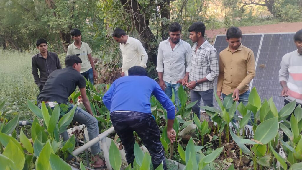 पहिल्यादा आम्ही ती जागा पाहून त्या ठिकाणी प्रकाश पडतो का ते पहिले . त्या ठिकाणी झाड खूप वाढले होते त्या मुले सोलर पेनल वर प्रकाश कमी पडत होता , आम्ही त्या झाडाच्या फांद्या कट करून घेतल्या .