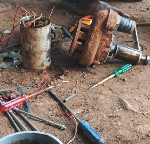 मोटर सुरक्षितपणे उघडून स्टेटर वेगळा केला जातो. जळालेली वाईंडिंग तपासून घेतली जाते.
