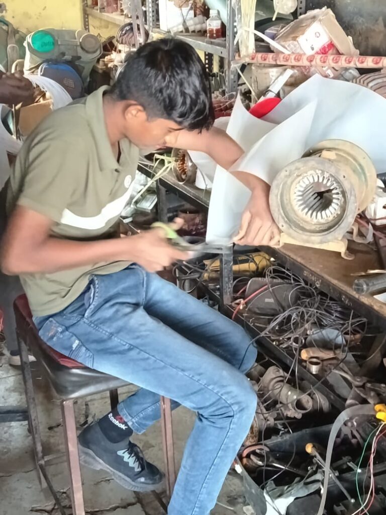 गुणवत्तापूर्ण कॉपर वायर वापरून मोटरच्या स्लॉटमध्ये नवे कॉइल्स वळले जातात.