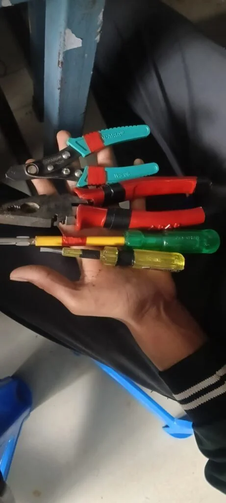 वेगवेगळ्या प्रकारच्या वायर – जसे की सिंगल कोर, मल्टी कोर, फ्लेक्सिबल वायर – यांचा उपयोग कधी आणि कसा करायचा हे समजलं. वायरच्या गेजचं महत्त्व आणि सुरक्षित वायरिंगसुद्धा शिकलो. - फॉल्ट डिटेक्शन आणि रिपेअर: