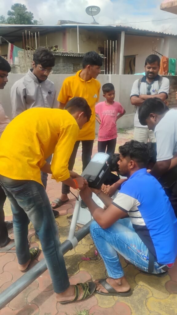 गावात पहिल्यांदाच पूर्ण सोलर लाईट प्रकल्प यशस्वीपणे पूर्ण केला.