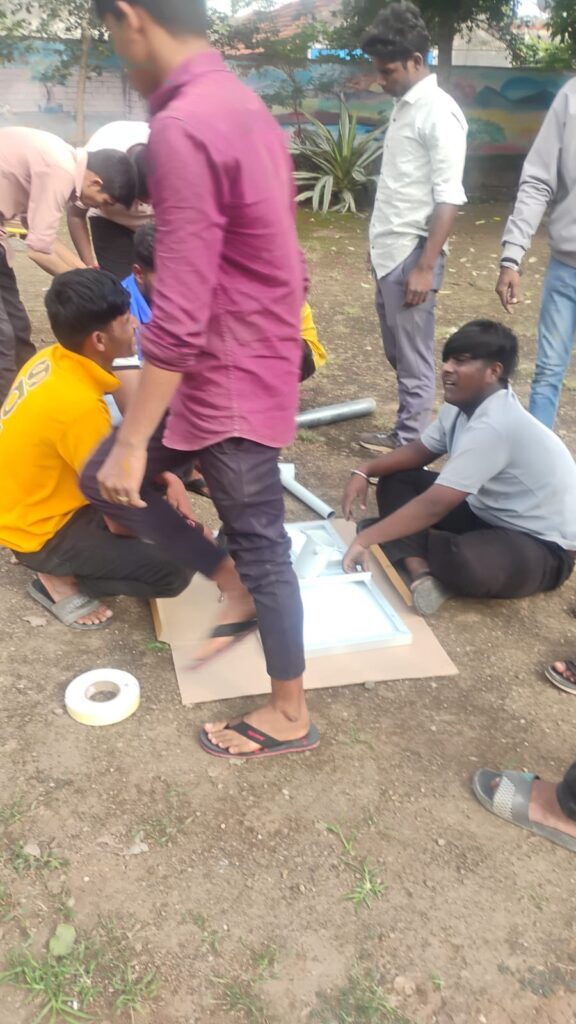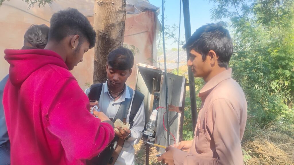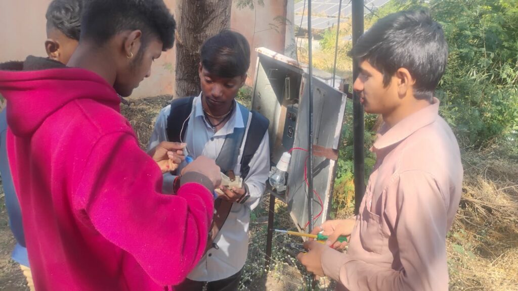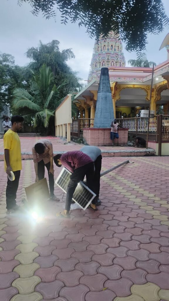 सर्वप्रथम योग्य ठिकाण निवडले जिथे सोलर पॅनलला पुरेसा सूर्यप्रकाश मिळेल. त्यानंतर सोलर पॅनल सुरक्षितपणे बसवले. पॅनलला चार्ज कंट्रोलर आणि बॅटरीशी जोडले. पुढे LED लाईट योग्य उंचीवर बसवून सर्व वायर जोडण्या तपासल्या. सर्व जोडण्या पूर्ण झाल्यानंतर लाईटची चाचणी घेतली. संध्याकाळी अंधार पडताच सोलर लाईट आपोआप सुरू झाल्याचे दिसले.