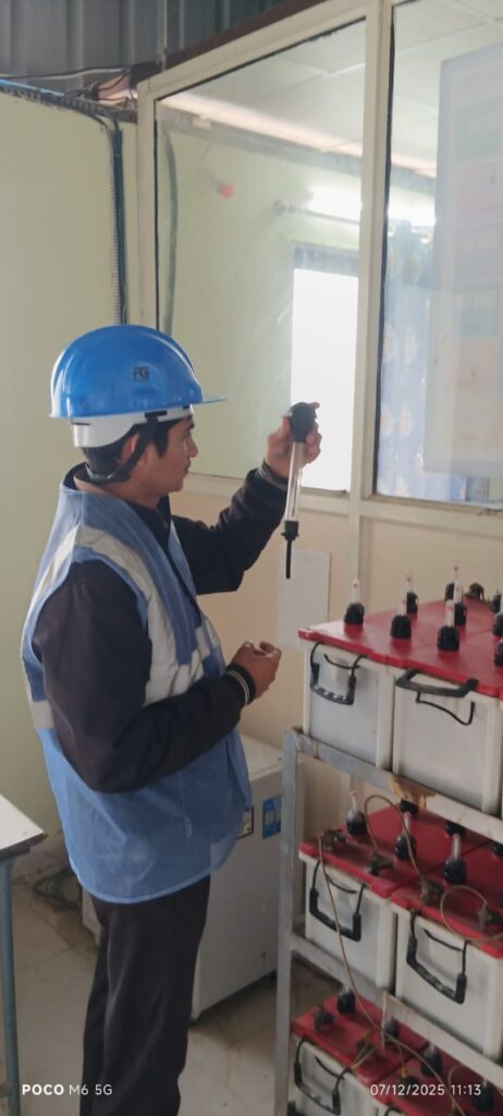 बॅटरीतील इलेक्ट्रोलाइटची पातळी तपासली.