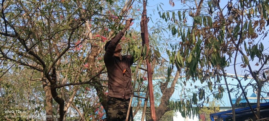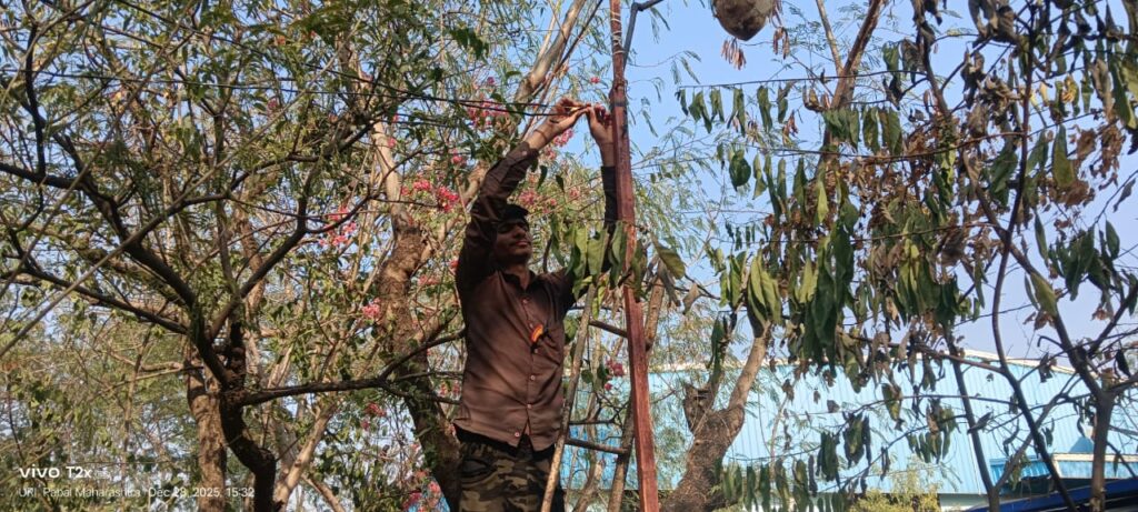 सुरक्षिततेच्या दृष्टीने हातमोजे व चष्म्याचा वापर केला.