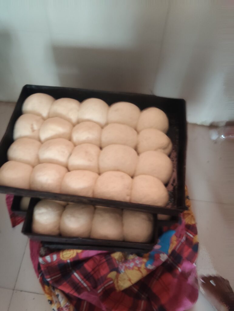 अब आटे की छोटी-छोटी लोइयाँ बनाकर ट्रे में रखें।