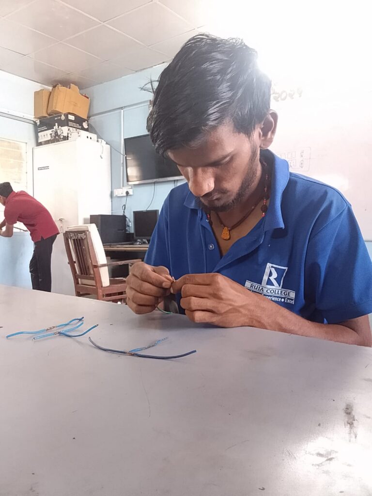 - पट्टीमध्ये योग्य साईजची वायर टाकून वायरिंग पूर्ण केली.