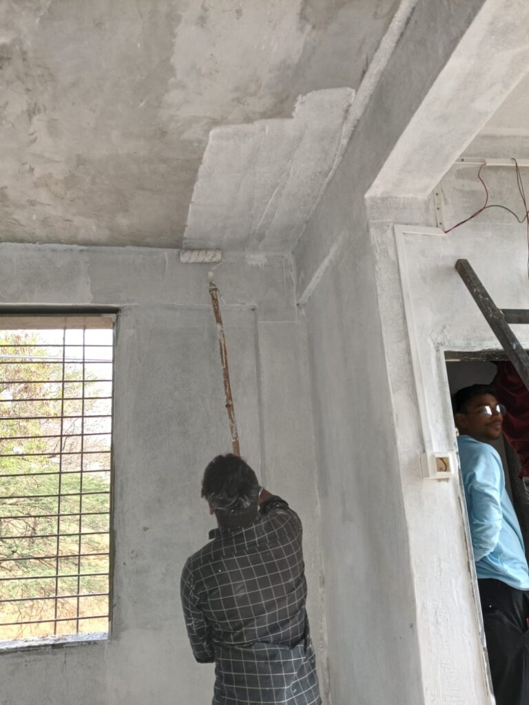 2) प्लास्टरिंग – 1:4 ( 1 घमेले सिमेंट, 6 घमेले वाळू)