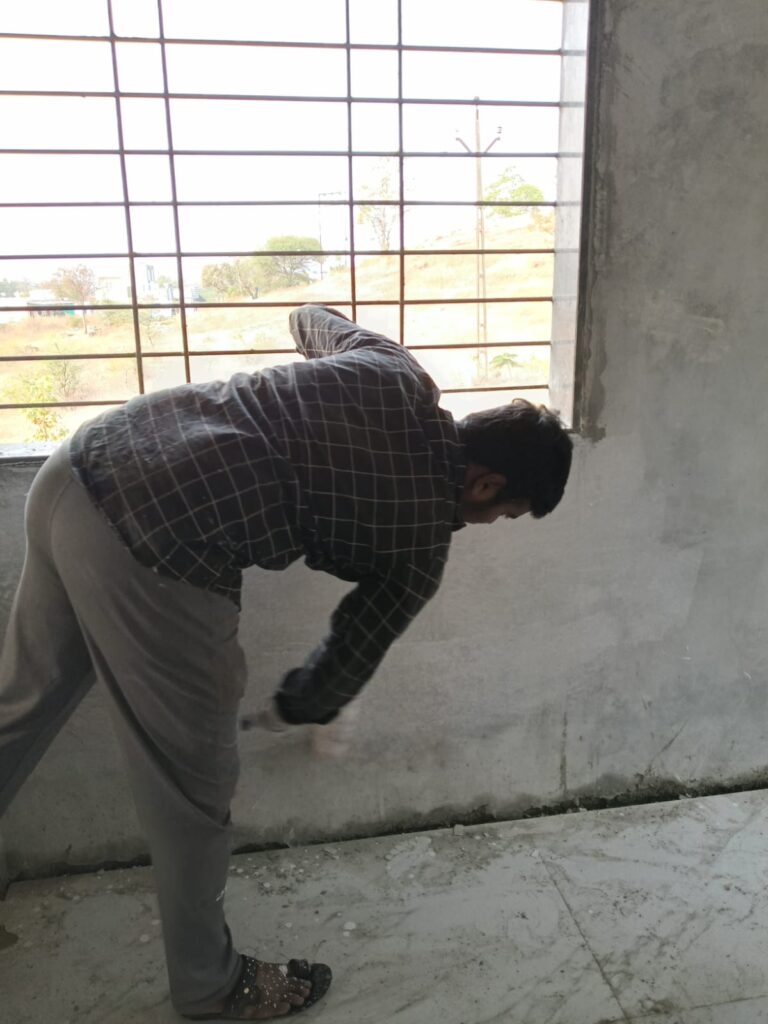 2) पोलीस पेपर ने भिंत गुळगुळीत करणे व चांगले घासून घेणे.