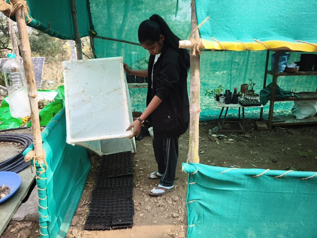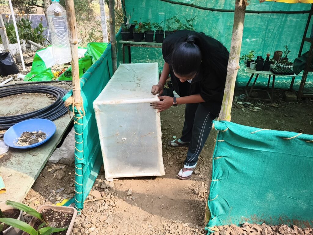 पर्पल प्लांट को क्यारी में लगाने का निरीक्षण
