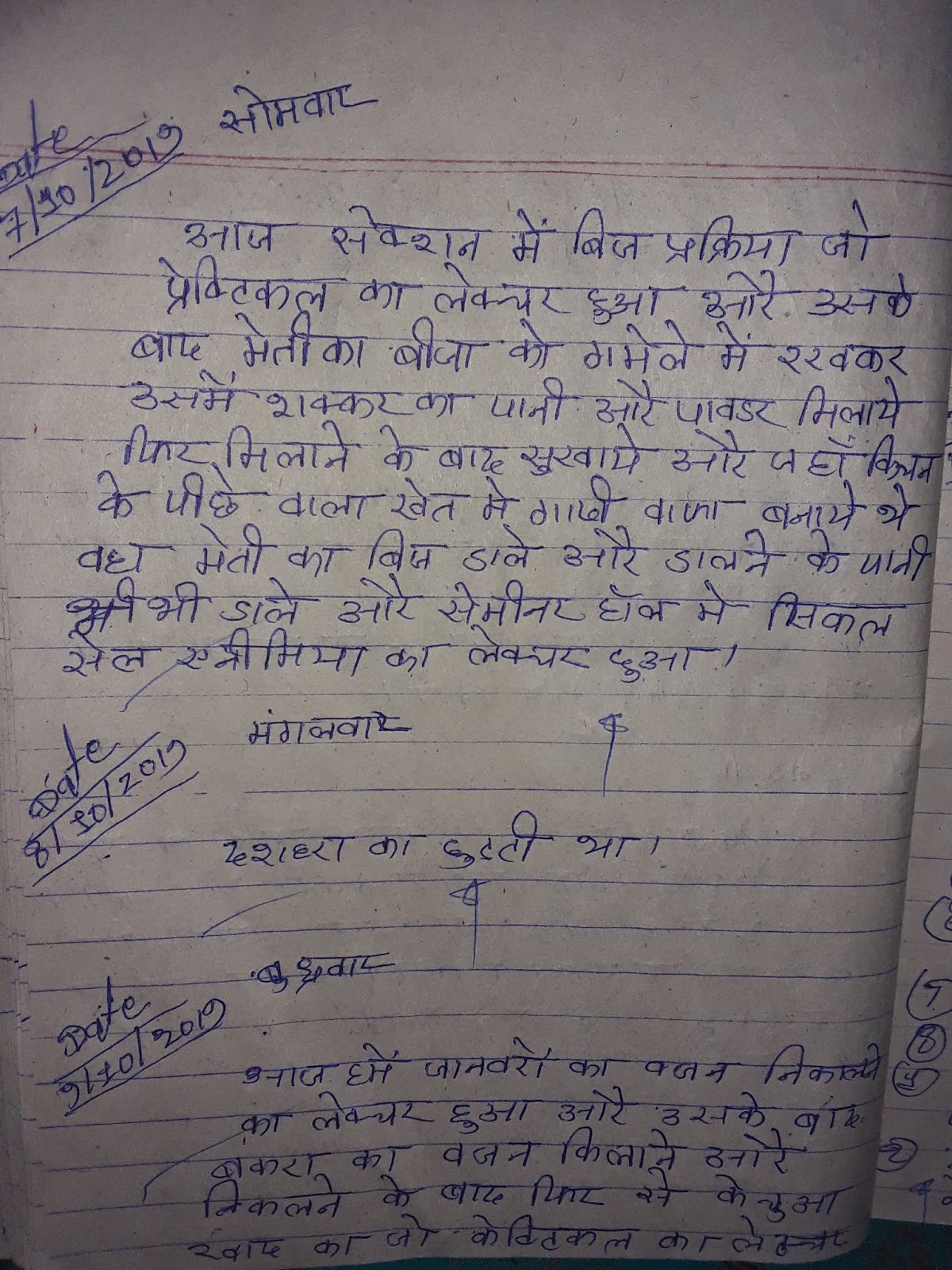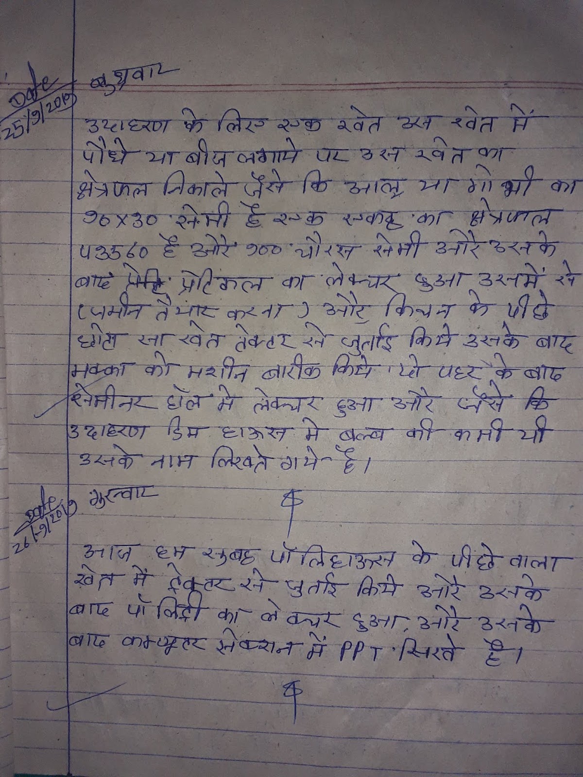 | क्र | दिन | बीज के नाम | फसल का अकुरा आने मे कितने दिन लगा हे | खाद ओर दवाई | फसल के फूल आने मे कितने दिन लगे हे | |||||||||||