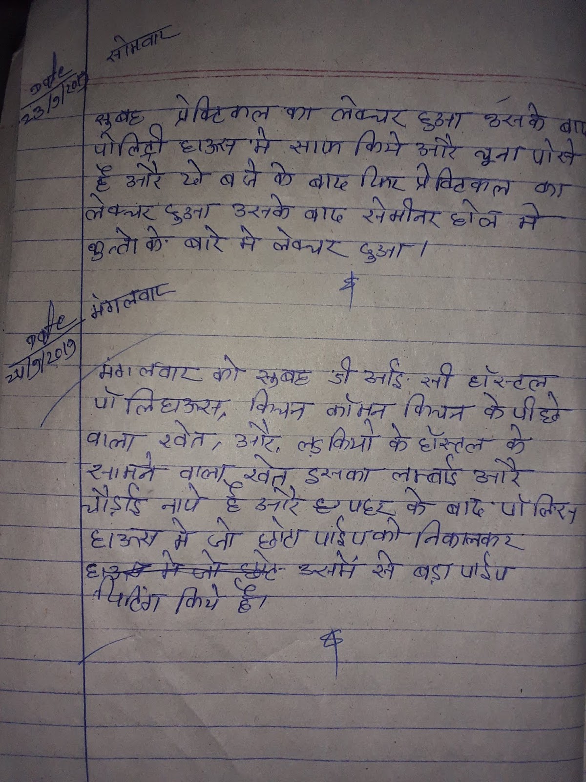 | ४ | २८/९/१९ | पानी मे daalee ओर १ – १ लीतर | ||||||||||||||