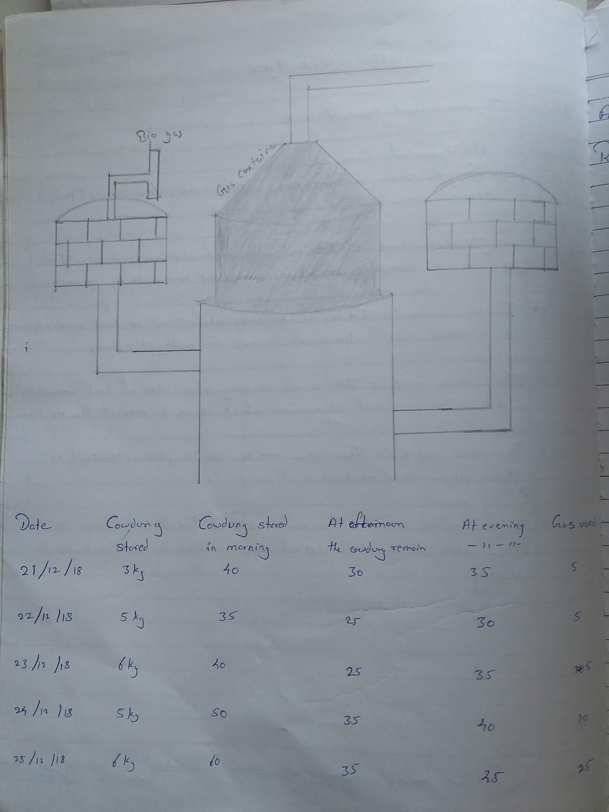 Procedure :- bio gas is made or been produce from the cow dung .there are two type of Bio-gas plants . 1) floating dome type 2) fix dome type .