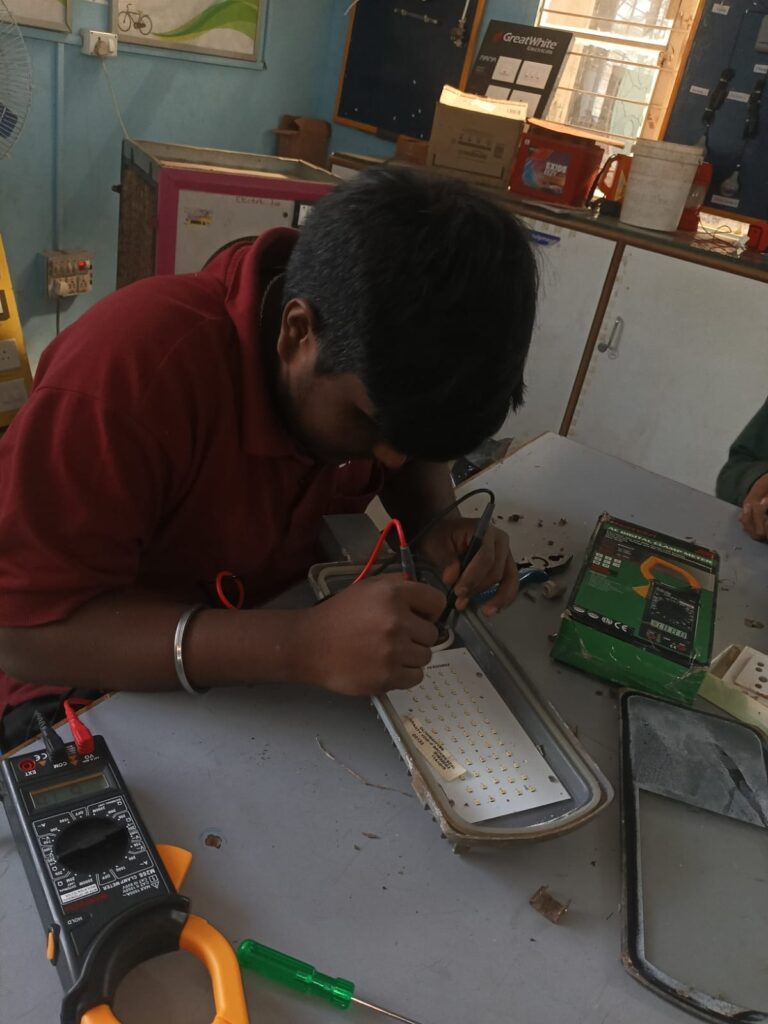 वेगवेगळ्या प्रकारच्या वायर – जसे की सिंगल कोर, मल्टी कोर, फ्लेक्सिबल वायर – यांचा उपयोग कधी आणि कसा करायचा हे समजलं. वायरच्या गेजचं महत्त्व आणि सुरक्षित वायरिंगसुद्धा शिकलो. - फॉल्ट डिटेक्शन आणि रिपेअर: