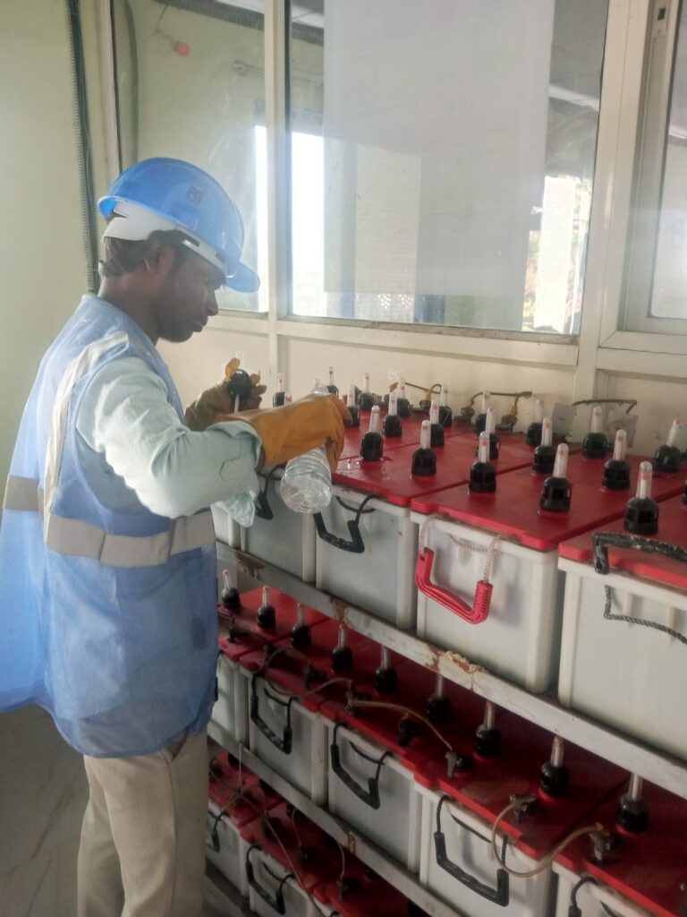 यात “150Ah” म्हणजे ती बॅटरी १ तासात 150 अँपिअर करंट देऊ शकते.आश्रमात राहात असताना मला बॅटरी मेंटेनन्सचं काम शिकण्याची उत्तम संधी मिळाली. सुरुवातीला बॅटरीचं काम थोडं कठीण वाटलं, पण दिवसेंदिवस अनुभव घेतल्यावर त्यामागचं विज्ञान आणि काळजी समजली. मी बॅटरीमध्ये