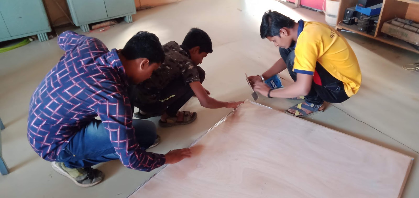 2. साहित्य आणले त्यानंतर प्लायवुड ला साईट पट्टी मारली वॉर्मिंग मारले