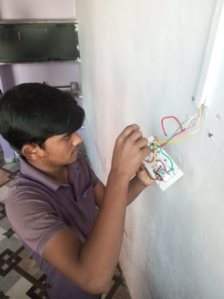 स्विच, सॉकेट, बल्ब होल्डर, पंखे का पॉइंट और MCB (मिनी ब्रेकर) लगाया जाता है।