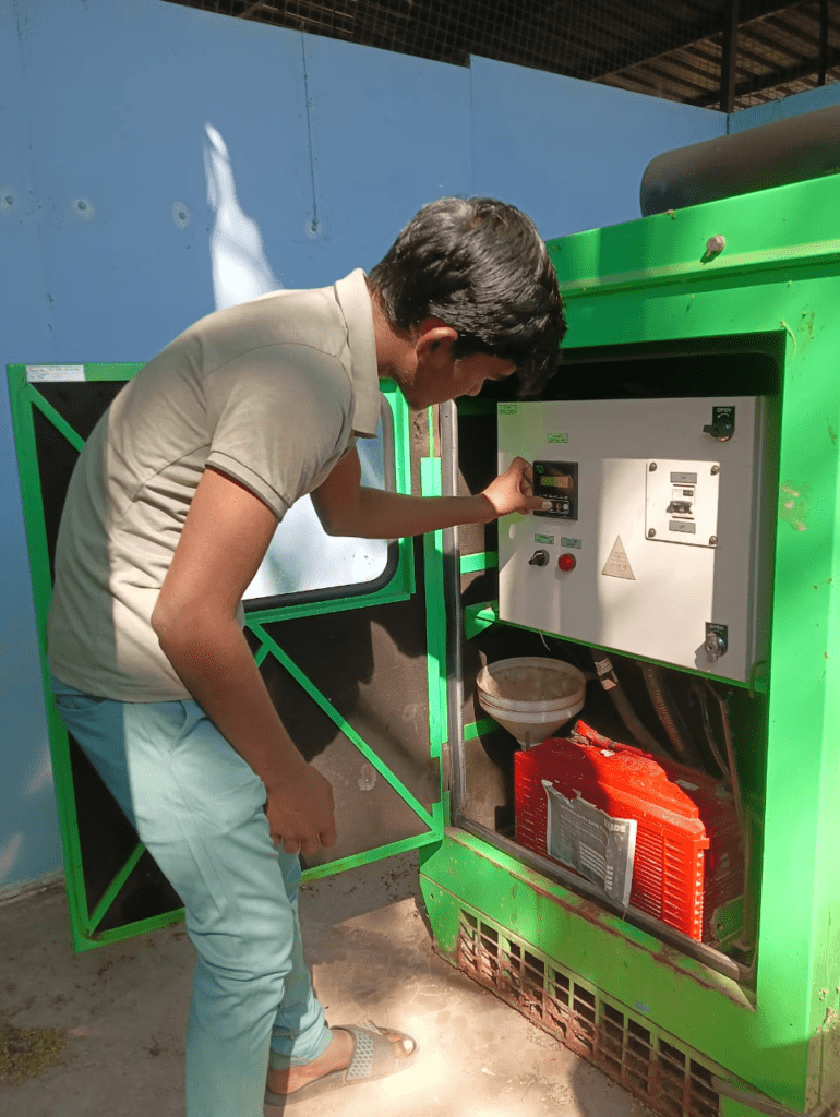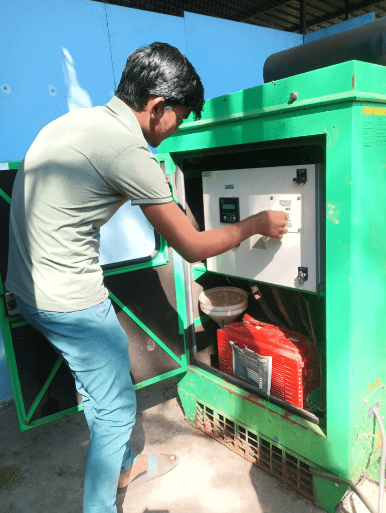 जनरेटर ऑपरेटर / तकनीकी कर्मचारी के मार्गदर्शन में सभी प्रक्रियाओं का अवलोकन किया गया। उन्होंने जनरेटर की क्षमता, अधिक लोड से बचाव, देखभाल का समय-निर्धारण तथा ऑयल बदलने के समय के बारे में महत्वपूर्ण जानकारी दी।