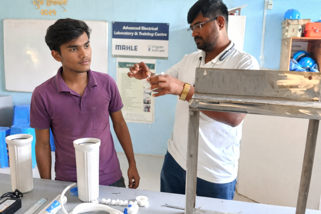विज्ञान आश्रम की इलेक्ट्रिक लैब में हमने ग्रे वॉटर को रिसायकल करके उसका उपयोग करने की जानकारी और प्रैक्टिकल कार्य सीखा।