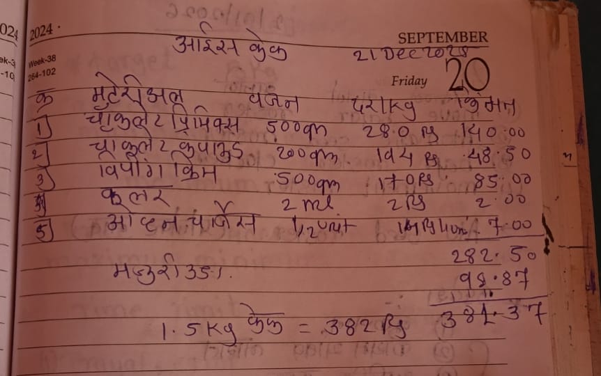 | मटेरीअल | वजन | दर / kg | किमत |
