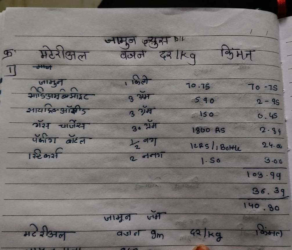 जांभुळ प्रकल्पाचा ज्यूस आणि जॅम तयार करण्यासाठी वापरलेले साहित्य