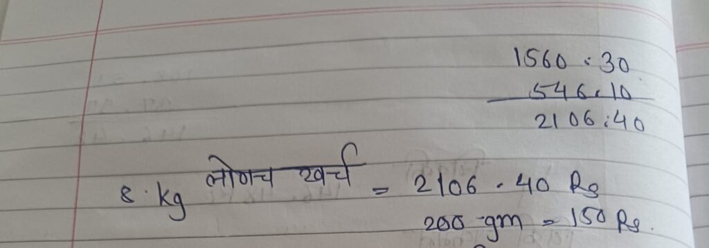 | मीठ | 120 gm | 15/kg | 1.8 | |