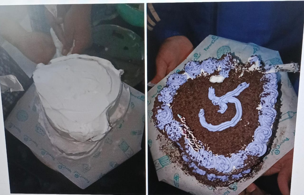 फूड लैब में 15 दिनों के प्रशिक्षण के दौरान शाकाहारी (Veg) केक बनाना सिखाया गया। इसमें सामग्री, मात्रा, मिक्सिंग, ओवन और स्वच्छता का महत्व समझाया गया।