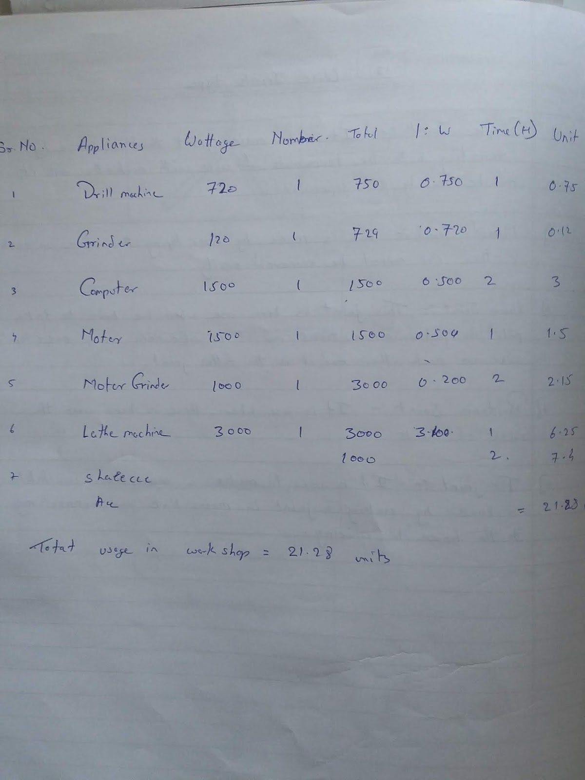 Procedure:- first get on information about the electrical bill and how to calculate it ,then we calculate the average of each machine time it works in day ,then we divided 1000 by