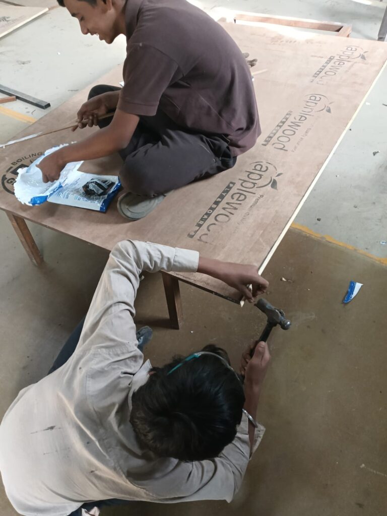 सनमाइका, पेन्सिल , क्लाऊड, कटर , स्क्रू , मापनी टेप ,गम,ॲब्रो टेप, ड्रिल मशीन ,टेबल बेस
