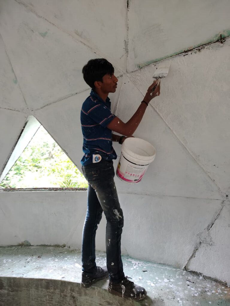 2) पोलीस पेपर ने भिंत गुळगुळीत करणे व चांगले घासून घेणे.