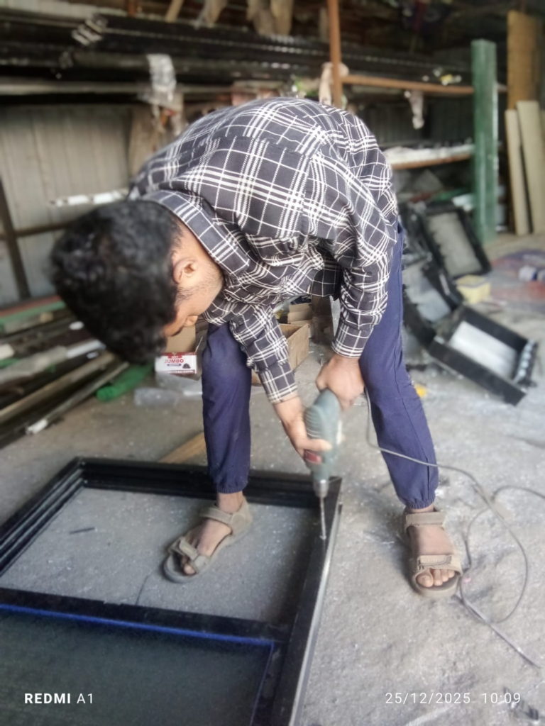 - रबर बीडिंग लावून काच घट्ट करा