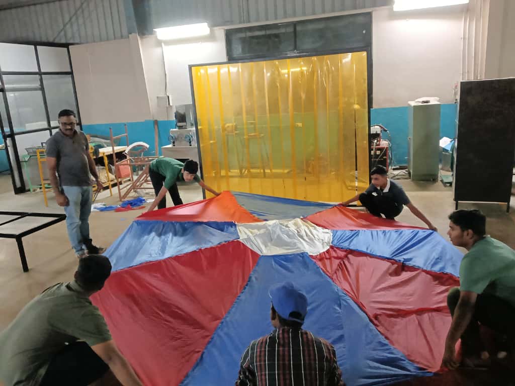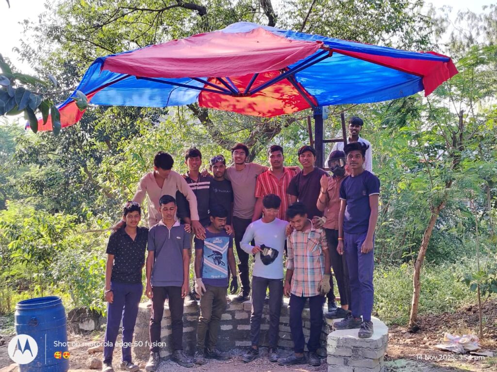 या कामात आम्ही वेल्डिंग , कटिंग , पॉलिशिंग आणि पावडर कोटिंग या सारखी तांत्रिक कौशल्य शिकलो . छत्री बनवताना सौंदर्य आणि उपयोग या दोन्ही गोष्टींचा विचार केला . भविष्याची ही छत्री पाहुण्यांसाठी विश्रामाची जागा म्हणून वापरली जाईल .
