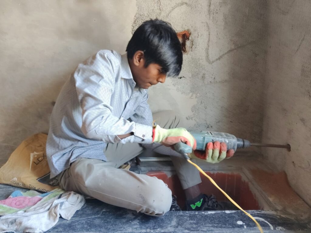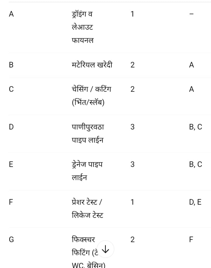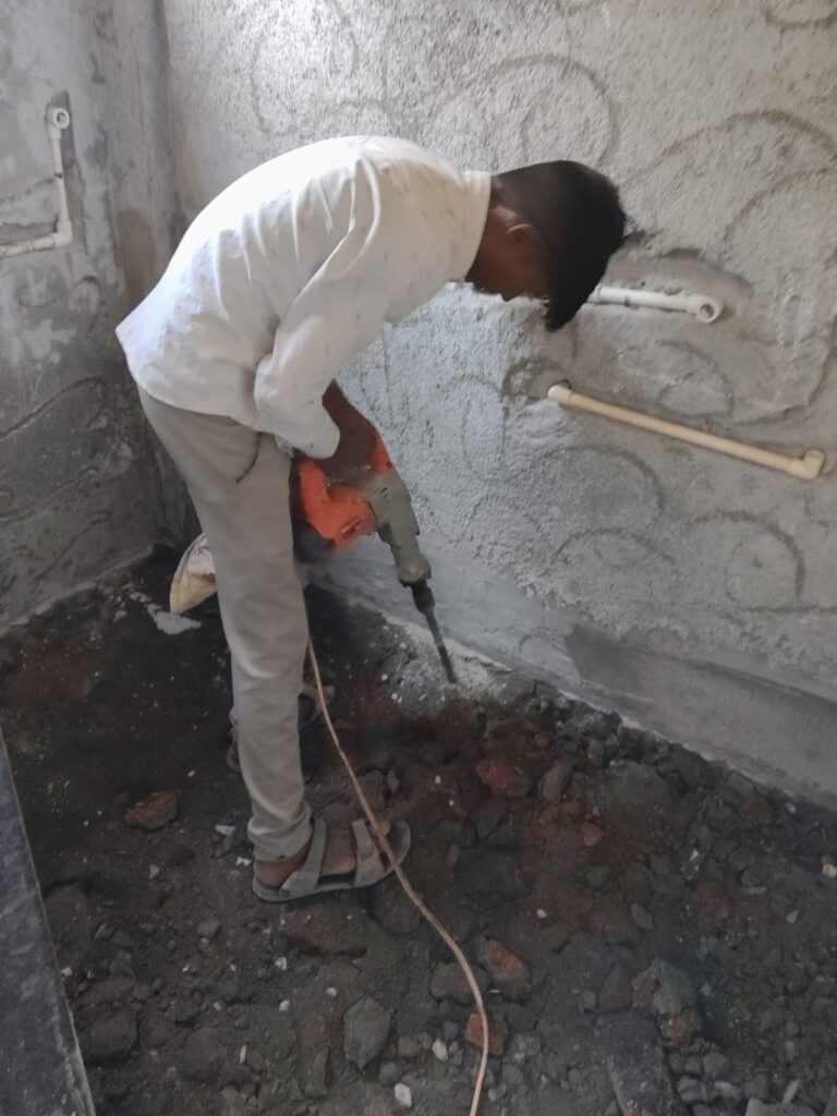 कृती करताना पहिले आम्ही गेस्ट होस्टेलमध्ये बाथरूमची गरम पाण्याचे आणि थंड पाण्याचे पाईपलाईन लावण्यासाठी कामे करण्यासाठी आम्ही हा नियोजन घेतला त्यानंतर आम्ही कुठे कुठे कोणता नळ लागतो शॉवर कुठे लागते कमळ कुठे लागते हे सगळे आम्ही पहिले नियोजन केला त्यानंतर आम्ही तिथे मार्किंग केली आणि किती साहित्य लागते किती एलबो लागते ते सगळ्या गोष्टी काढली त्याचे पहिले कॉस्टिंग काढली त्यानंतर किती फूट पाईप लागतो ह्या सगळ्या गोष्टी काढल्या मग आम्ही त्या मार्किंग वर ग्रेंडर नेरेस कापल्या त्यानंतर एक हातोडी आणि एक छन्नी त्यांनी आम्ही त्यांनी आम्ही छपाई जे मारली होती त्या छपाई मला आम्ही तोडलं तोडल्यानंतर ते मस्तपैकी एक पट्टी गेली पूर्ण बाथरूमला कुठे कुठे कोणत्या नळाला लागतात ते त्यानंतर आम्ही तिथे ब्रश गॅस सगळ्या गोष्टी लावून कुठे कोणता नळ पाहिजेल त्यानंतर आम्ही ह्या सगळ्या गोष्टी काढल्या आणि मंग आम्ही त्याला सपोर्टसाठी खिळे मारले इकडून तिकडून असे हे सगळे आम्ही कृती केली.