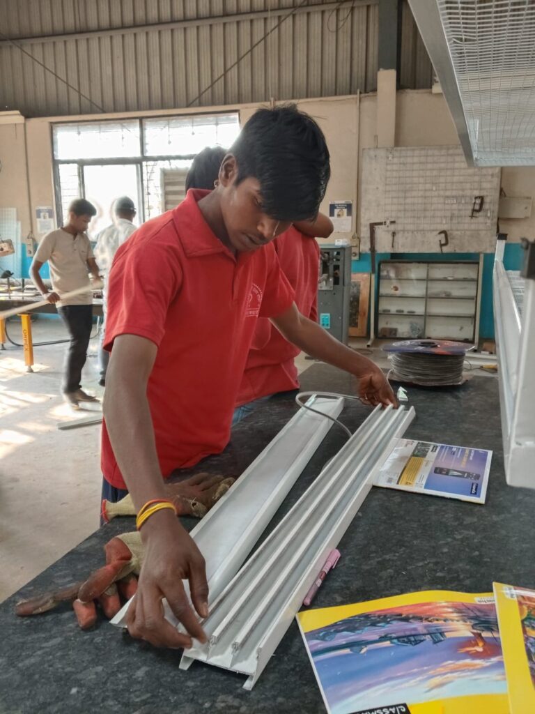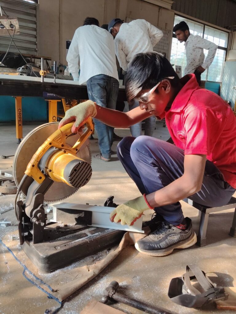 याच्यातून आम्ही कशाप्रकारे पहिले स्टार्ट ला फ्रेम बनवायचे हे पण शिकलो आणि त्याला फळ्या लावण्याचे कशाला पाहिजे ते पण शिकलो त्यानंतर आम्ही त्याच्यातून लांबी लावण्याला रडाक्षेत मारणाऱ्या कलर मारायला नटबॉल फिटिंग करायला या सगळ्या गोष्टी त्याच्यातून शिकलो आणि त्या कोडच्या कामाला किती मशीन काम येतात ती मशीनला लागतात किती साहित्य लागतात हे पण माहिती झाली.