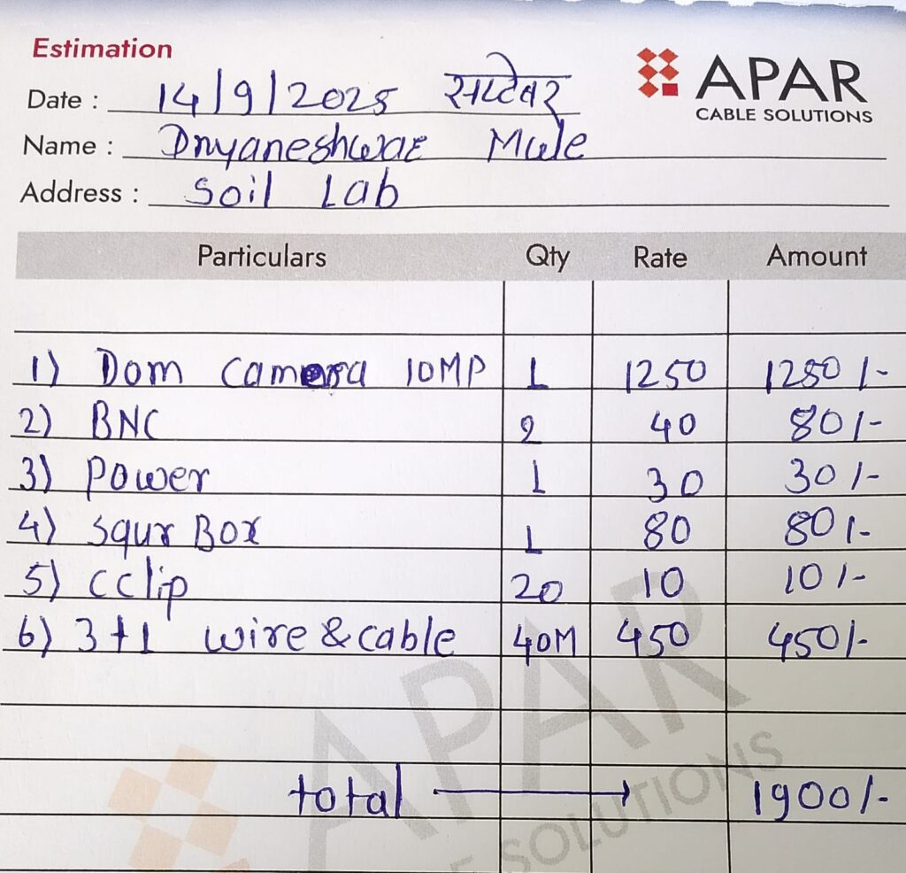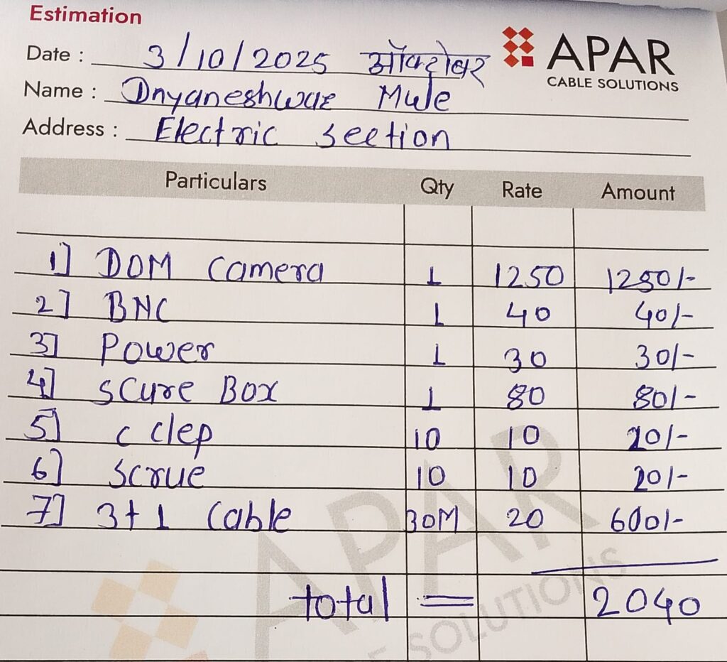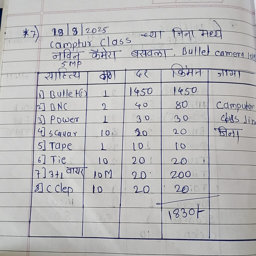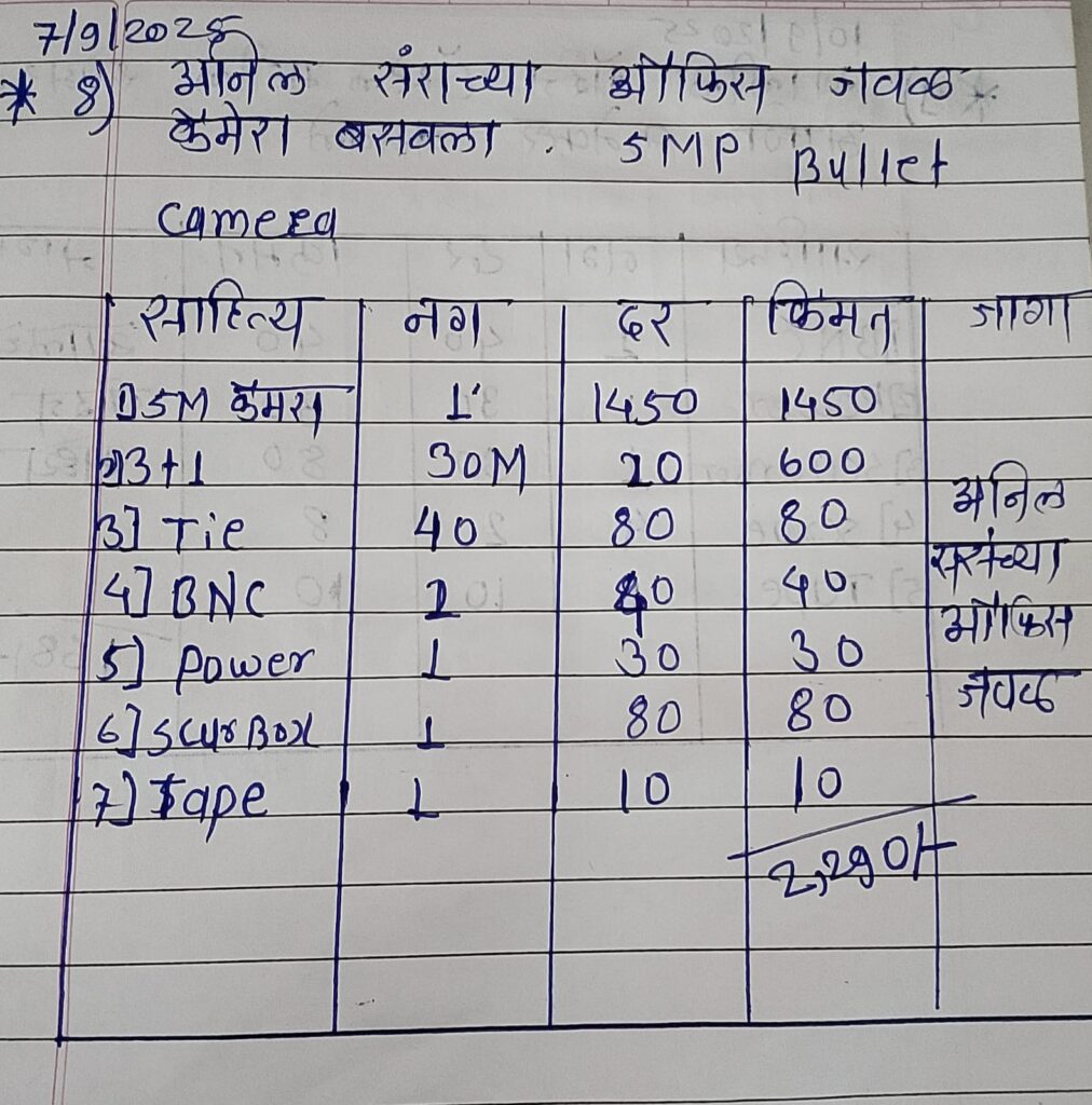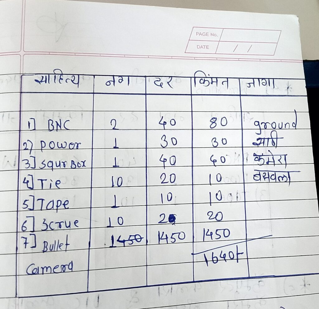 अनिल साराच्या ओफीस जवळील पोल वर बसवलेला कॅमेराची कॉस्टिंग