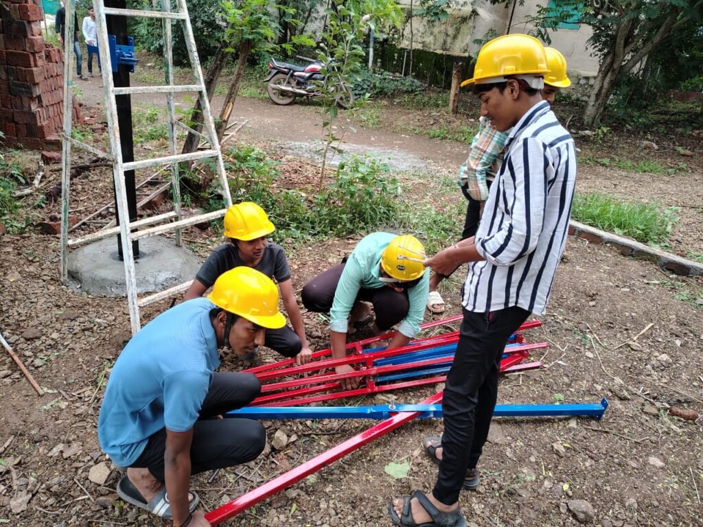 या कामात आम्ही वेल्डिंग , कटिंग , पॉलिशिंग आणि पावडर कोटिंग या सारखी तांत्रिक कौशल्य शिकलो . छत्री बनवताना सौंदर्य आणि उपयोग या दोन्ही गोष्टींचा विचार केला . भविष्याची ही छत्री पाहुण्यांसाठी विश्रामाची जागा म्हणून वापरली जाईल .