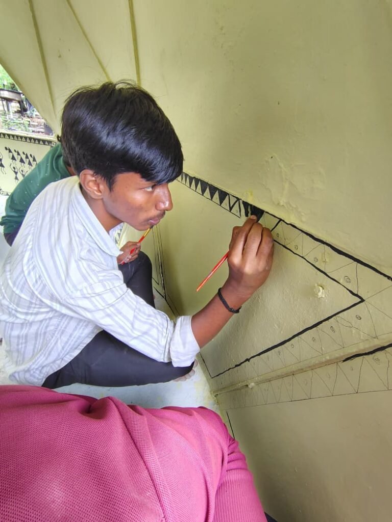 рдЖрддрдЪреНрдпрд╛ рднрд┐рдВрддреАрдВрд╡рд░ рд╣рд▓рдХрд╛ рд░рдВрдЧ рд╡рд╛рдкрд░рд╛рд╡рд╛ рдЖрдгрд┐ рд╡рд╛рд░рд▓реА рдЪрд┐рддреНрд░рдХрд▓рд╛ рдХрд░реВрди рдкрд╛рд░рдВрдкрд░рд┐рдХ рд╕реМрдВрджрд░реНрдп рдЬреЛрдкрд╛рд╕рд╛рд╡реЗ.