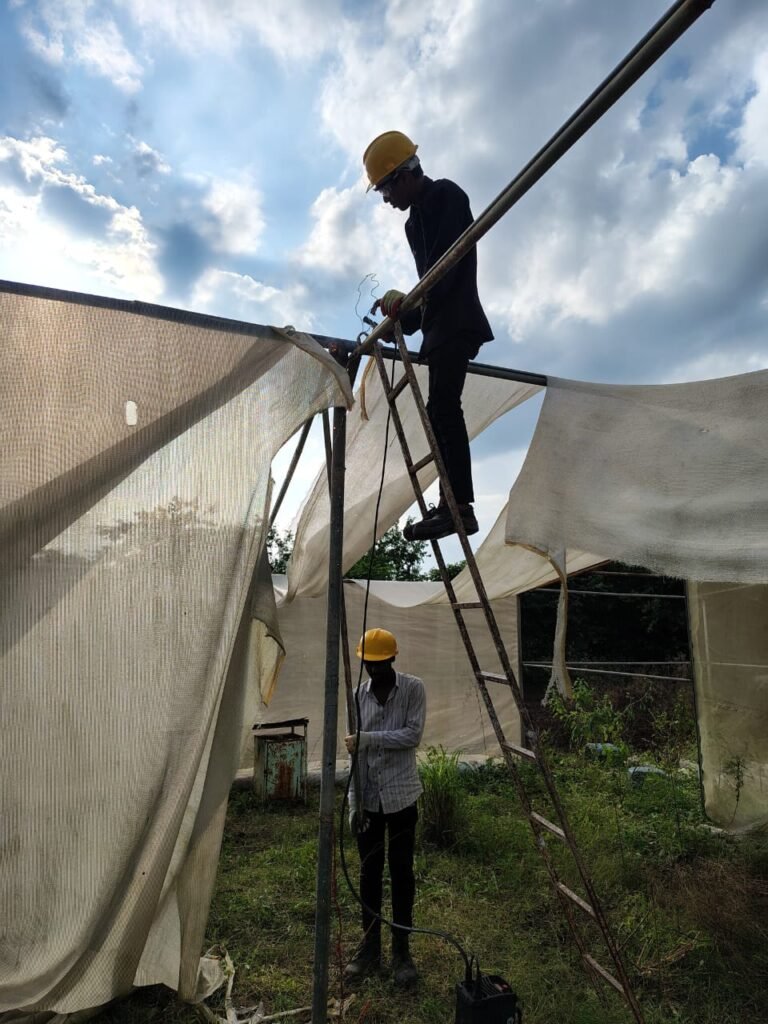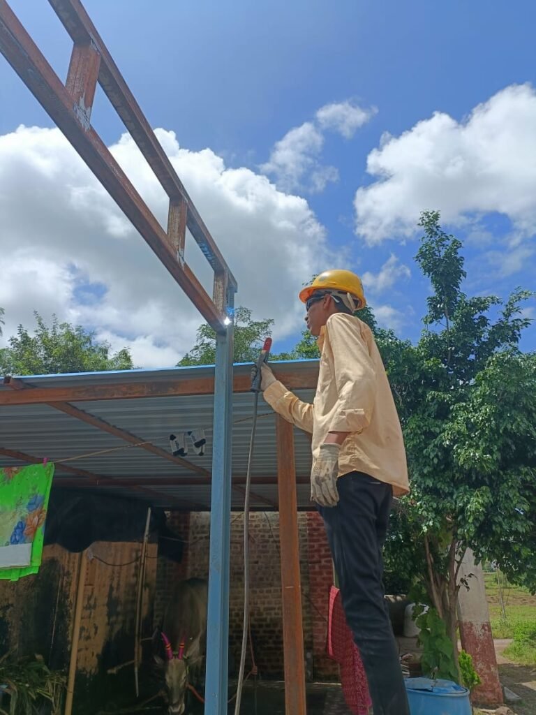 . рд╕рд░реНрд╡ рдЦрд┐рдбрдХреНрдпрд╛рдВрдЪреЗ рдЕрдЪреВрдХ рдореЛрдЬрдорд╛рдк рдШреЗрддрд▓реЗ. рддреАрди рд╡реЗрдЧрд╡реЗрдЧрд│реНрдпрд╛ рдорд╛рдкрд╛рдВрдЪреНрдпрд╛ рдЧреНрд░реАрд▓рдЪреА рдХреЙрд╕реНрдЯрд┐рдВрдЧ рдХреЗрд▓реА рд╡ рд╕рд╛рд╣рд┐рддреНрдп рдЦрд░реЗрджреА рдХреЗрд▓реЗ.30├Ч3 L-angleрд╡рд╛рдкрд░реВрди рд╕рд░реНрд╡ рдЧреНрд░реАрд▓рдЪреА рдлреНрд░реЗрдо рддрдпрд╛рд░ рдХреЗрд▓реА. рек├Чрен рдЧреНрд░реАрд▓рд╕рд╛рдареА рдлреНрд░реЗрдордордзреНрдпреЗ 2├Ч2 рдЬрд╛рд│реА рдмрд╕рд╡рд▓реА. рддреНрдпрд╛рд╡рд░ 4 рдЗрдВрдЪ рдЕрдВрддрд░рд╛рд╡рд░ рдЖрдбрд╡реЗ 10├Ч10 рд╕реНрдХреНрд╡реЗрдЕрд░ рдмрд╛рд░ рд▓рд╛рд╡рд▓реЗ.рд╡ рдЪрд╛рд░ рдЙрднреЗ рд╕реНрдХреНрд╡реЗрдЕрд░ рдмрд╛рд░ рдмрд╕рд╡рд▓реЗ. рд╕рд░реНрд╡ рдмрд╛рд░ рд╡ рдЕрдБрдЧрд▓рдЪреА рд╡реЗрд▓реНрдбрд┐рдВрдЧ рдХрд░реВрди рдордЬрдмреБрддреА рджрд┐рд▓реА.рд╡реЗрд▓реНрдбрд┐рдВрдЧрдирдВрддрд░ рд╕рдВрдкреВрд░реНрдг рдЧреНрд░реАрд▓рд▓рд╛ рдЧреНрд░рд╛рдЗрдВрдбрд┐рдВрдЧ рдХрд░реВрди рд╕реНрдореВрде рдлрд┐рдирд┐рд╢ рджрд┐рд▓реА. рднрд┐рдВрддреАрдд рдмрд╕рд╡рдгреНрдпрд╛рд╕рд╛рдареА 30├Ч3 рдЕрдБрдЧрд▓рдЪреЗ рдЪрд╛рд░ рддреБрдХрдбреЗ рдЬреЛрдбрд▓реЗ. рдЧреНрд░реАрд▓рд▓рд╛ рдкреНрд░рдердо Red Oxide рдкреНрд░рд╛рдЗрдорд░ рд▓рд╛рд╡рд▓рд╛. рддреНрдпрд╛рдирдВрддрд░ рдХрд╛рд│рд╛ рдСрдЗрд▓ рдкреЗрдВрдЯ рд▓рд╛рд╡реВрди рдлрд┐рдирд┐рд╢рд┐рдВрдЧ рджрд┐рд▓реЗ.